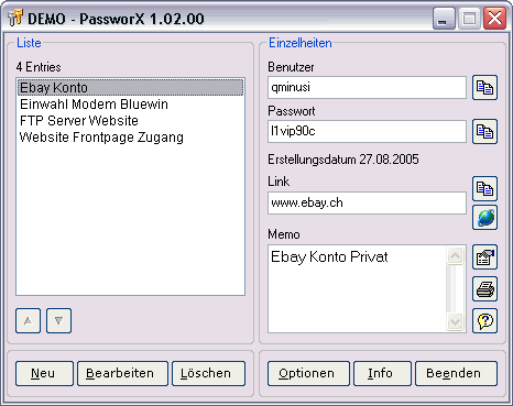 - Kopieren einzelner oder aller Passwörter in die Zwischenablage