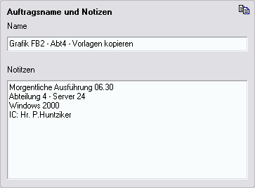 Bearbeitungsfenster für Aufträge - Auftragsname und Notizen