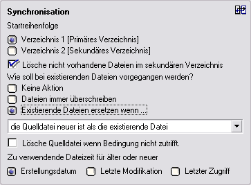 nicht vorhanden sind. Vorhandene Dateien werden in beiden Verzeichnissen
