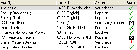 Die Spalten in der Auftragsliste zeigen die Intervalle in denen die Aufträge