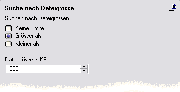 Diese Auswahl sucht nach Dateien die grösser als der eingegebene Wert sind