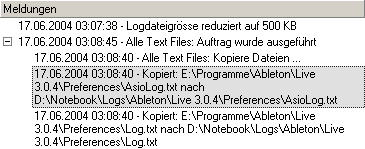 detaillierte Auflistung der durchgeführten Aktionen. In den Einstellungen
