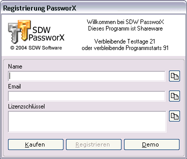 PassworX ist Shareware. Das Fenster zur Registrierung erscheint bei