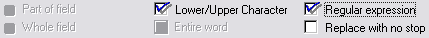 If the box for regular expressions is checked then some options are