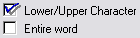 An activated upper or lower case checkbox searched the exact phrase. A