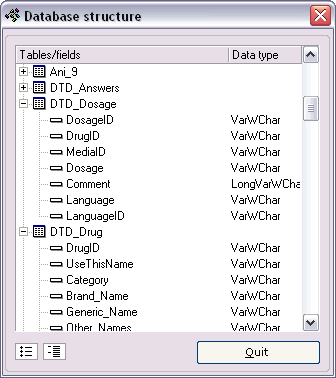 QuickDBReplacer offers a view to see the database structure. It shows